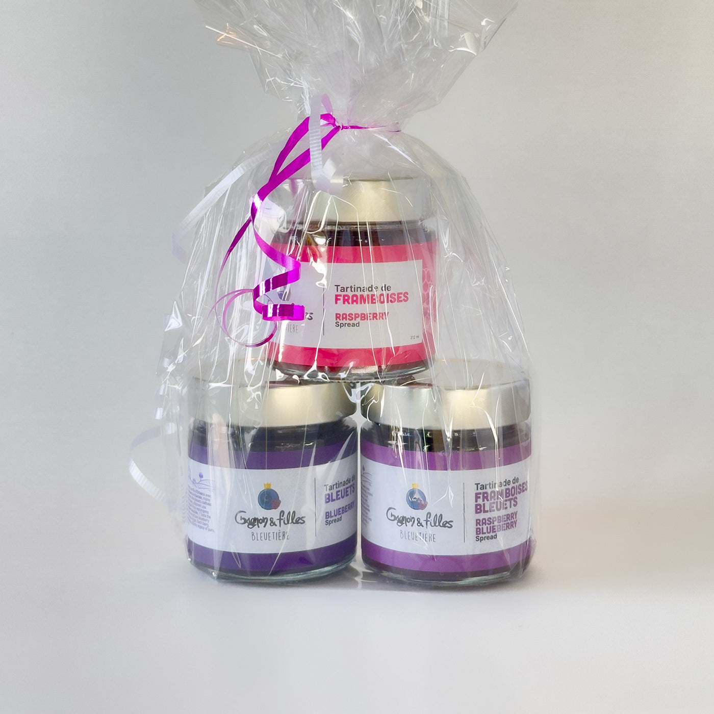 Trio de tartinades (1 x framboises, 1 x bleuets, 1 x duo)